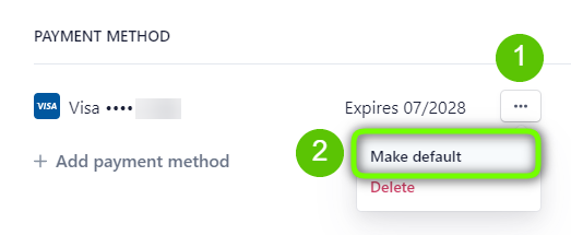 IMPORTANT: if you want the new payment method to be the one that you use to pay for the subscription, you must set it as default: