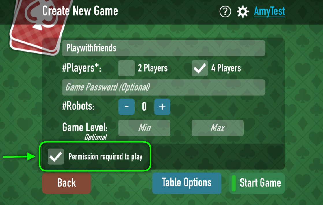 When creating a game, the host can set a game password (optional) or request permission to join the game