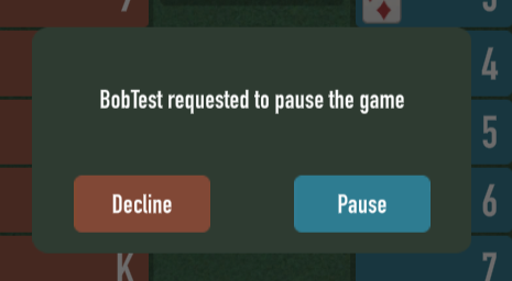 The host can pause the game at any time by tapping/clicking on the pause icon at the bottom right-hand corner of the screen. Other players can request the host to pause the game for up to five minutes