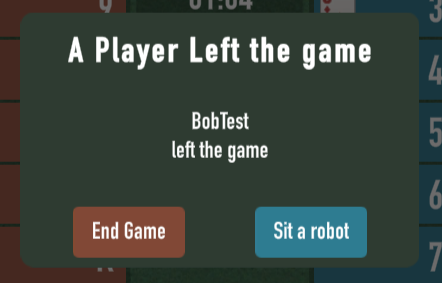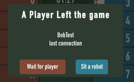 If the host sits a robot, it will take over the disconnected player and the game will resume
